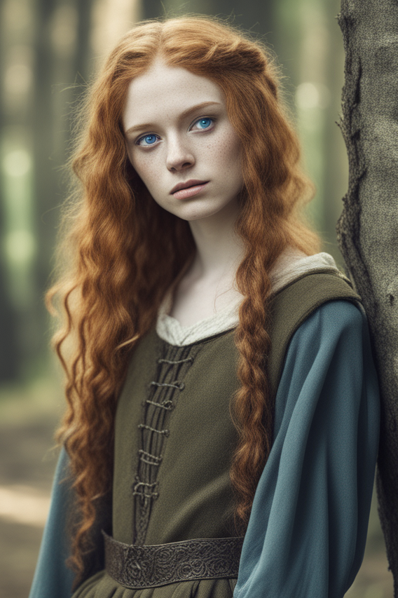 Mairéad ist ein junges Mädchen im zarten Alter von vielleicht 15 Jahren. Mit ihren knappen 1,50m ist sie auch wirklich nicht hoch gewachsen. Ihre orangefarbenden Haare trägt sie manchmal offen, manchmal aber auch hochgesteckt. Das hängt ganz nach ihrer Laune ab, welche sie aber versucht meist mehr für sich zu behalten, als ihre Gefühle nach außen wirken zu lassen.